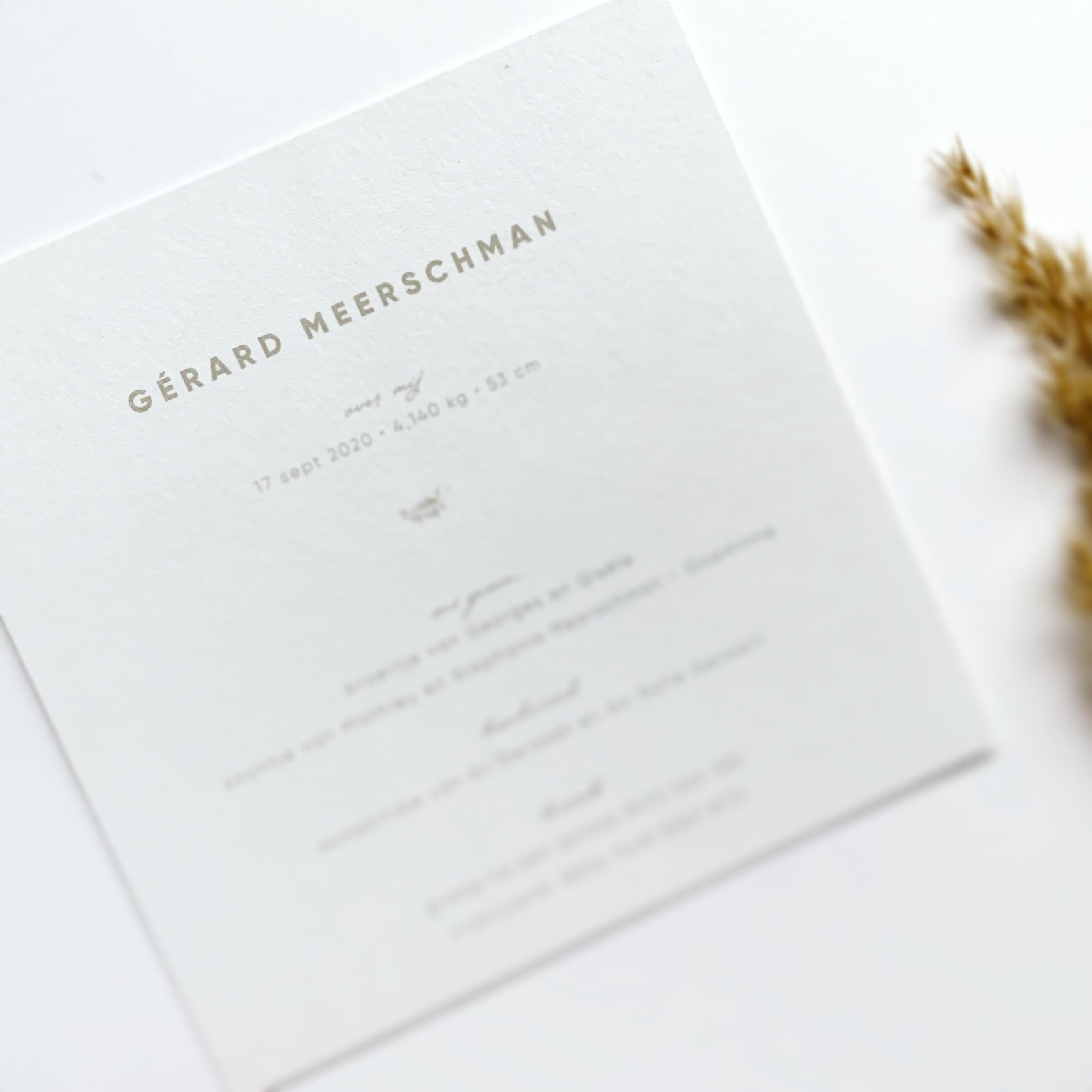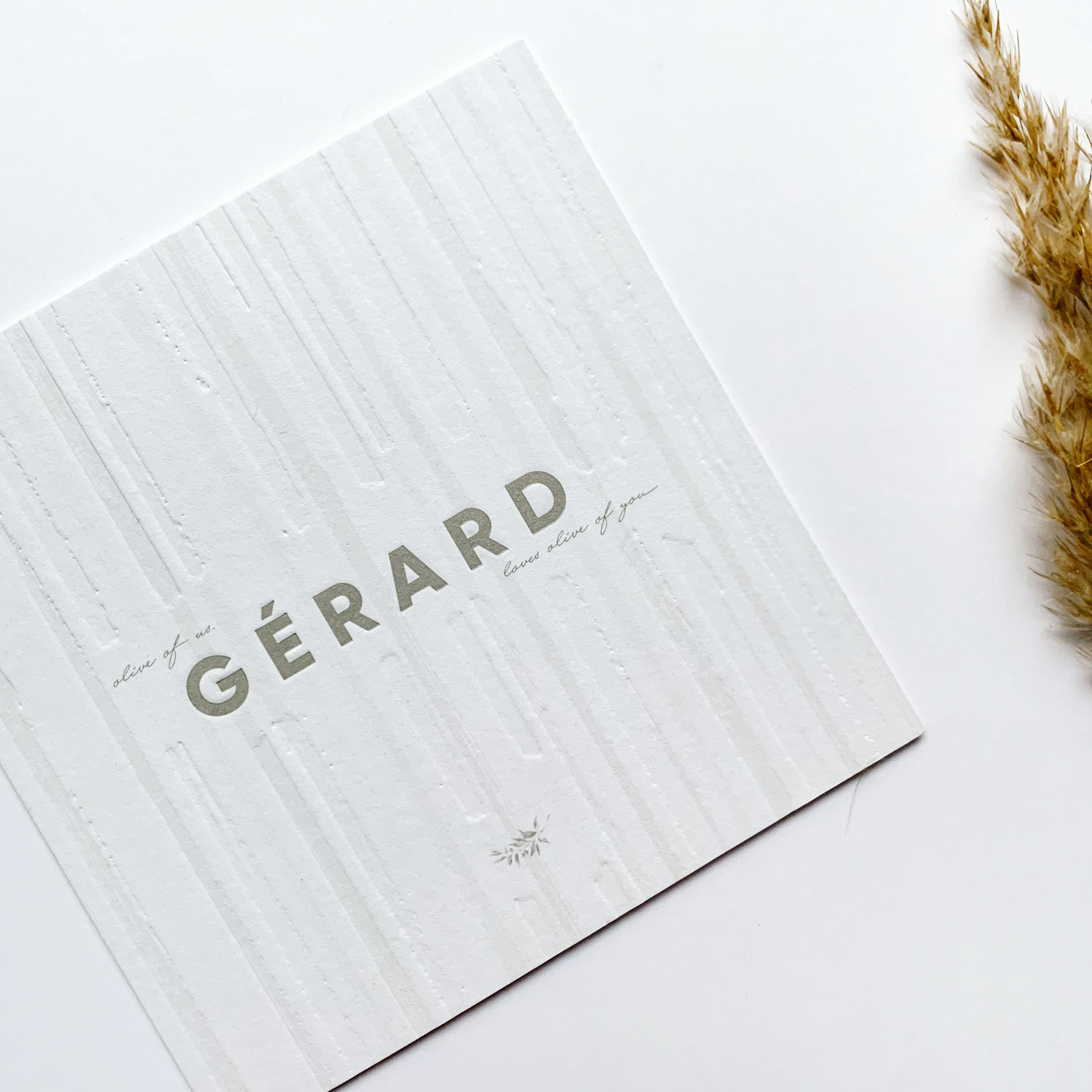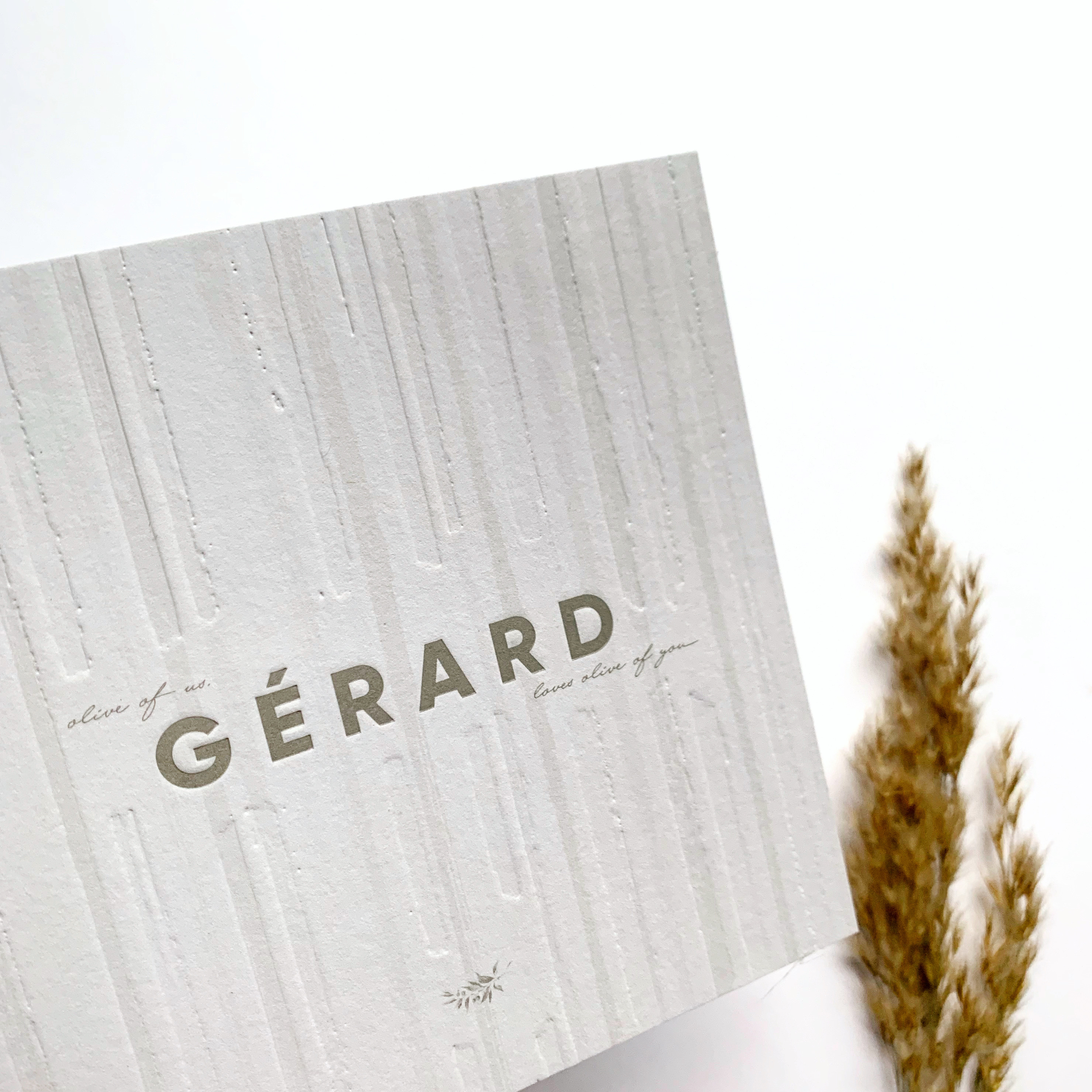 Geboortekaartje voor Gérard met bijpassend olijftakje en quote 🙂