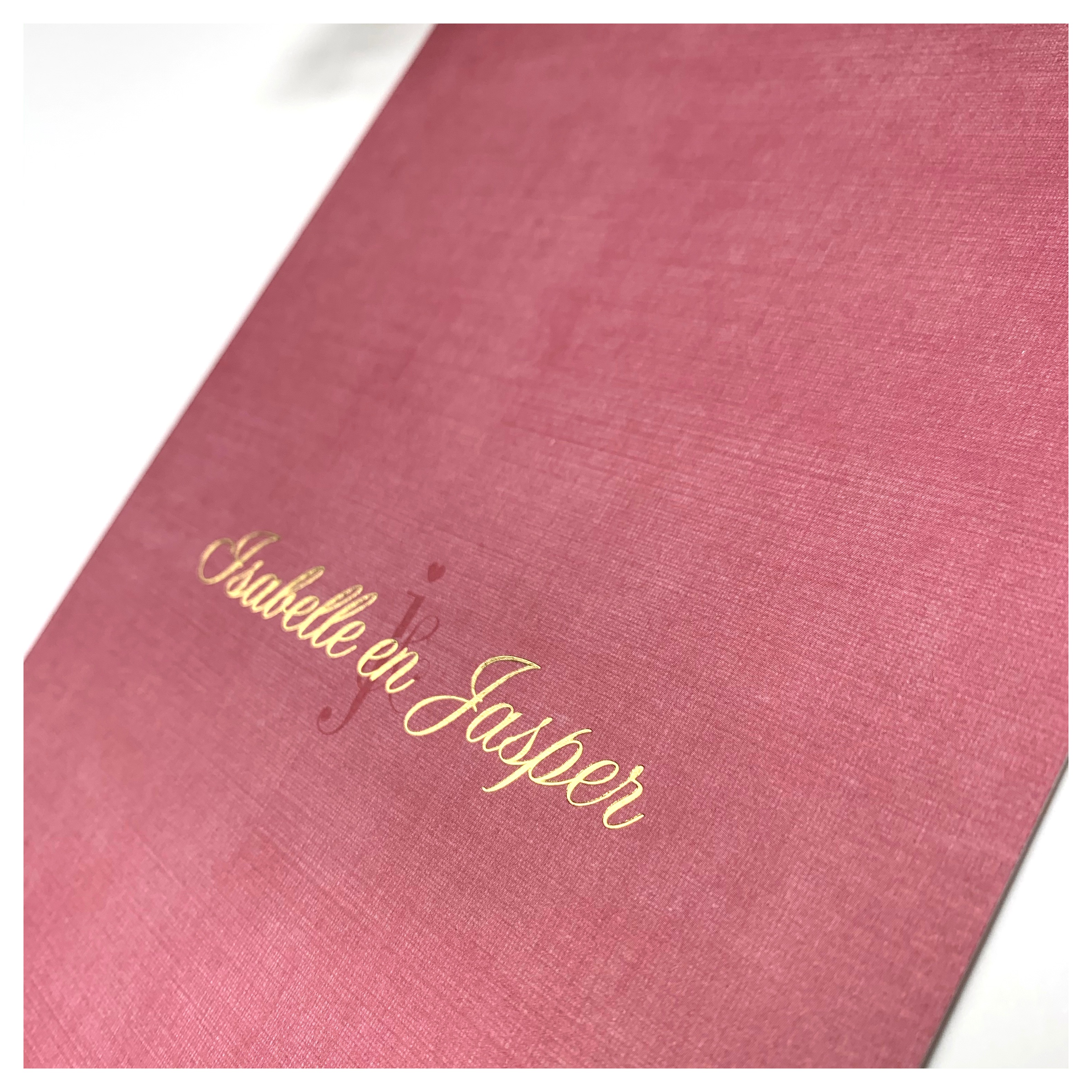 Gedrukt op linnenpapier met gouden foliedruk