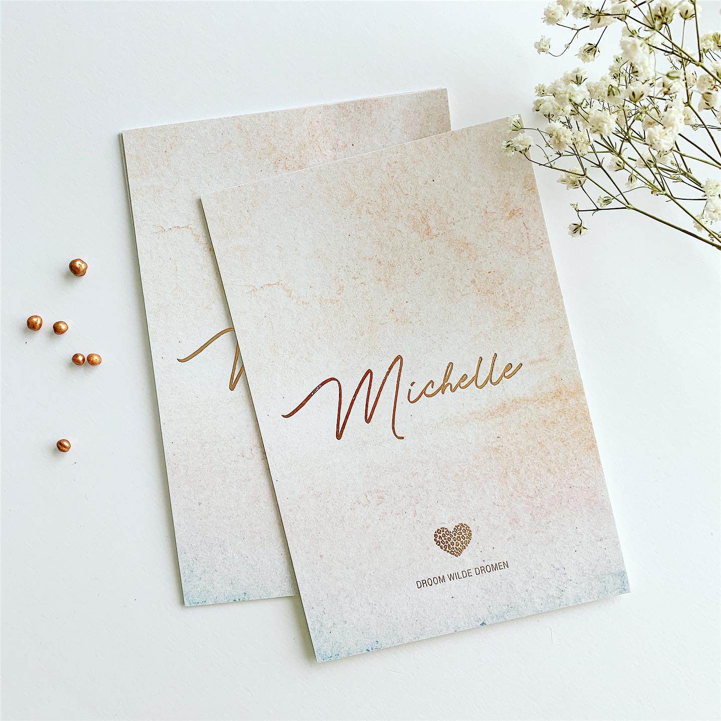 Droom wilde dromen – geboortekaartje met luipaardhartje voor Michelle.