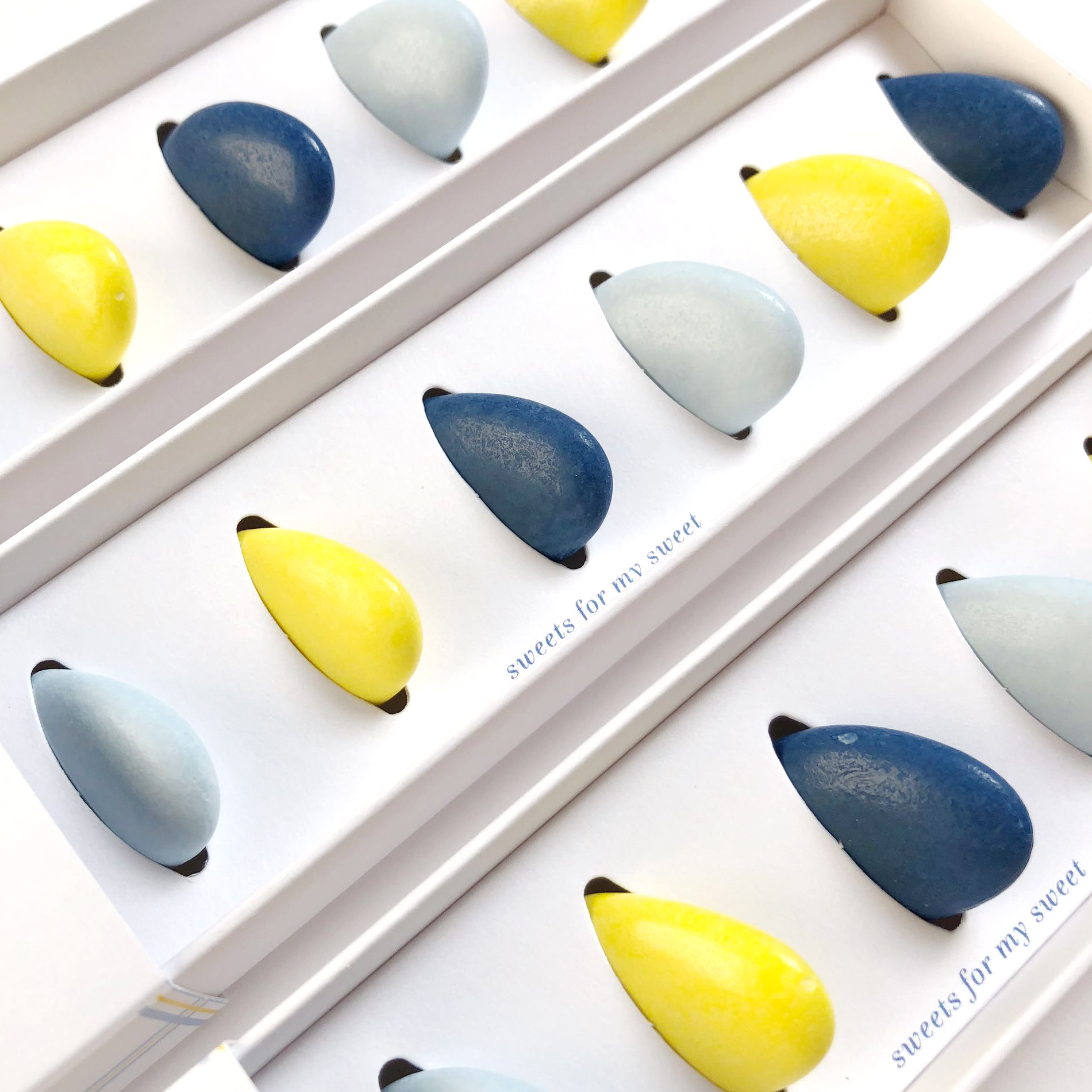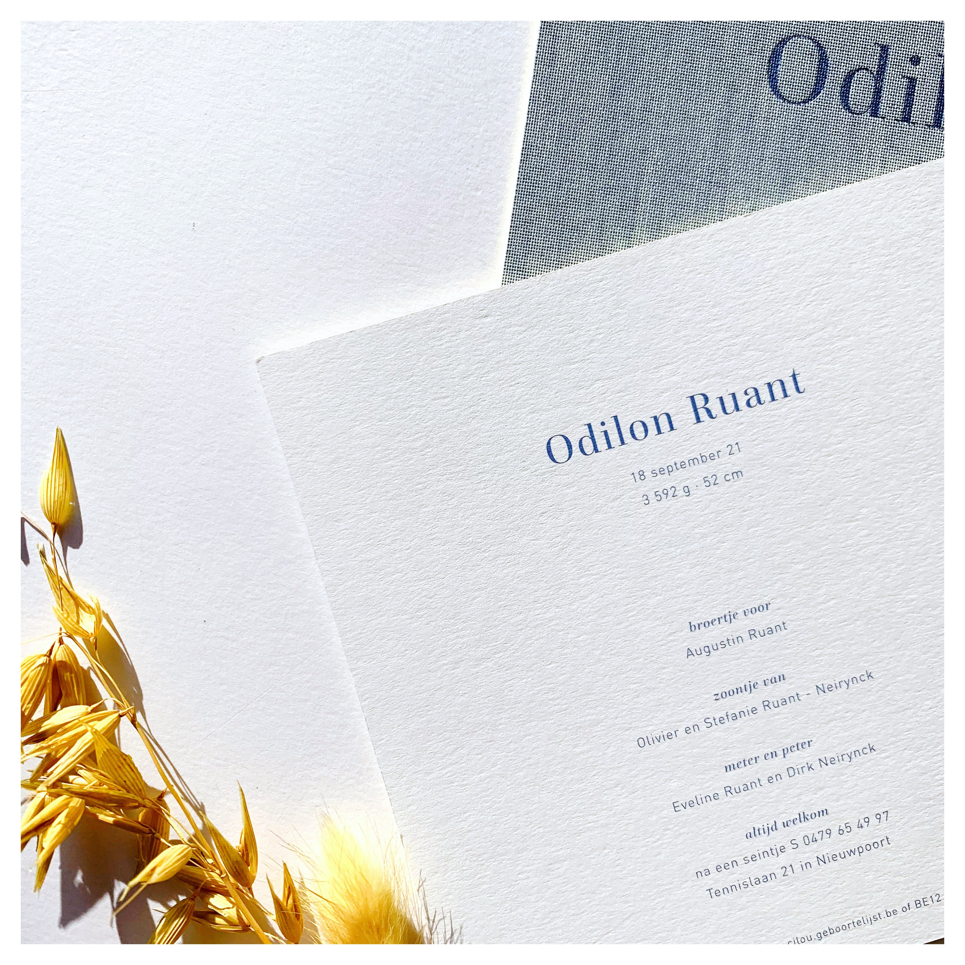 Geboortekaartje met blauw linnen en ton sur ton foliedruk