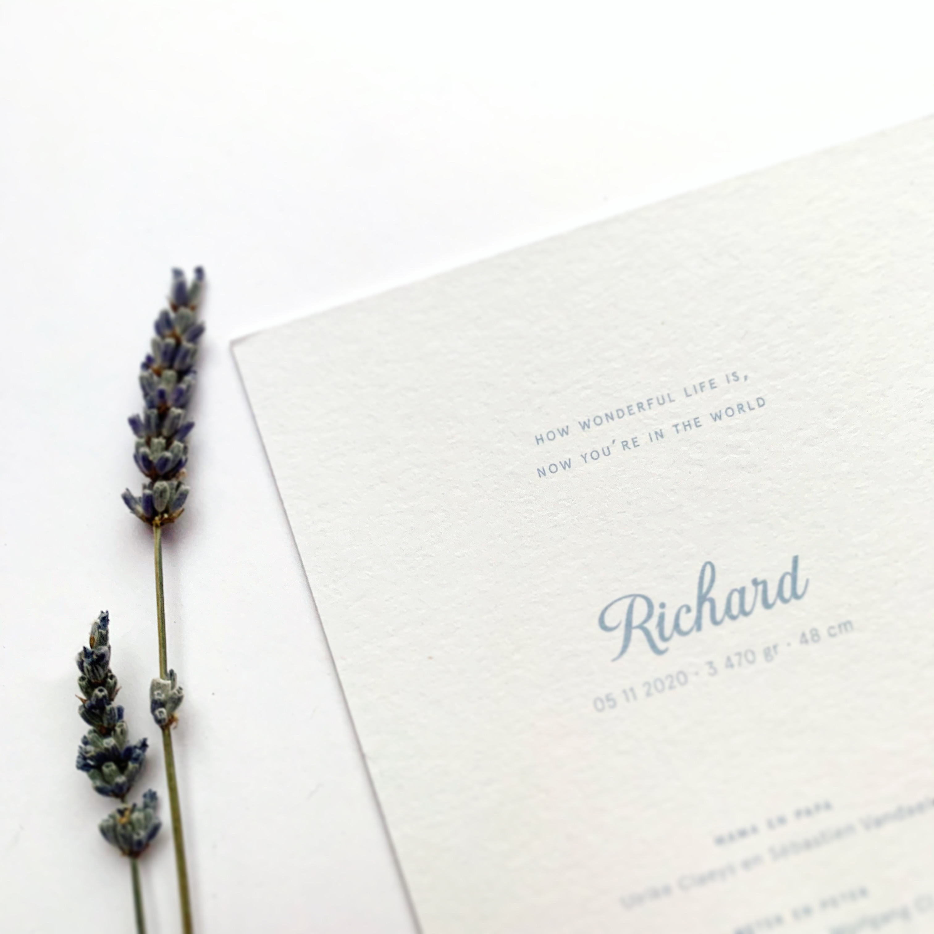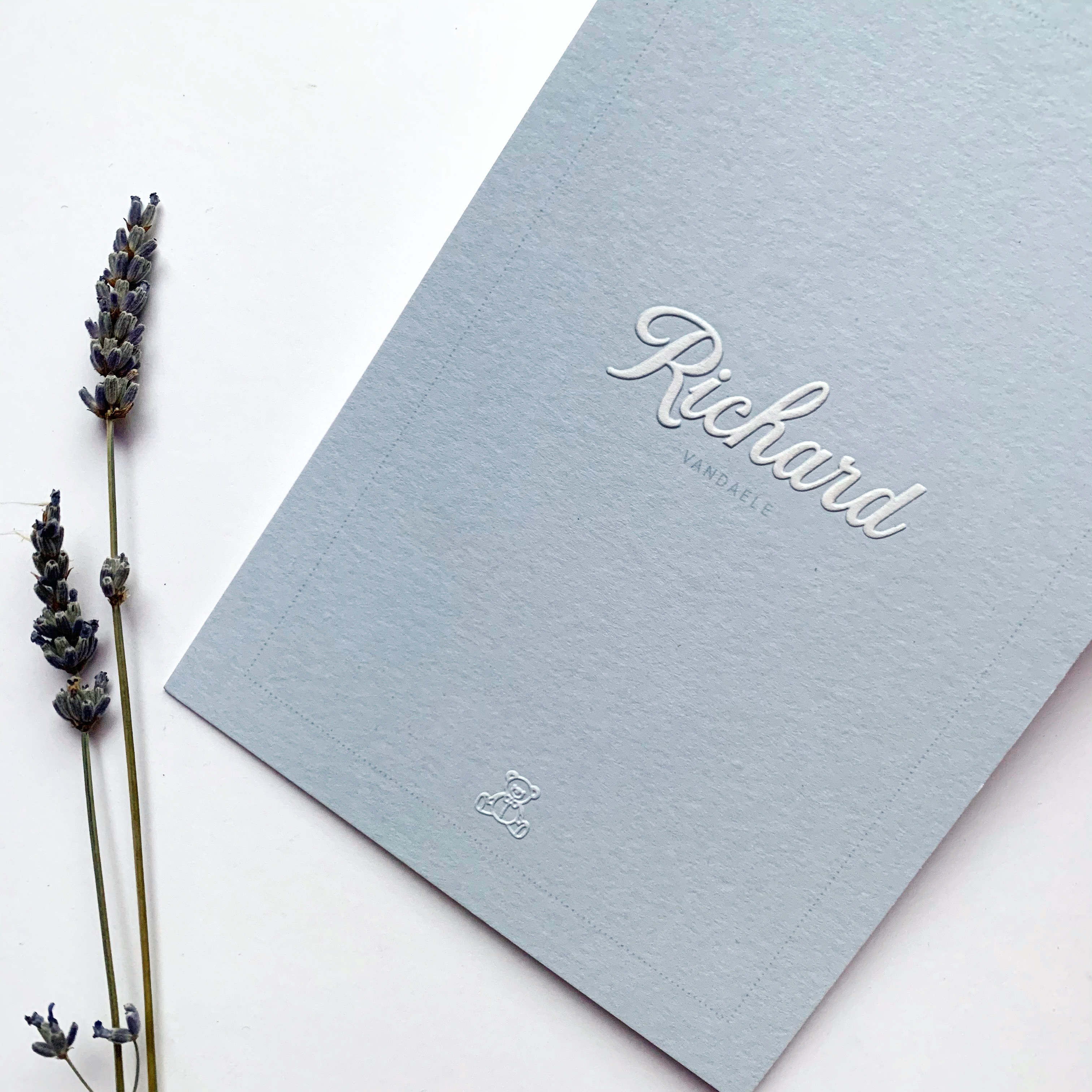 Geboortekaartje voor Richard met blinddruk