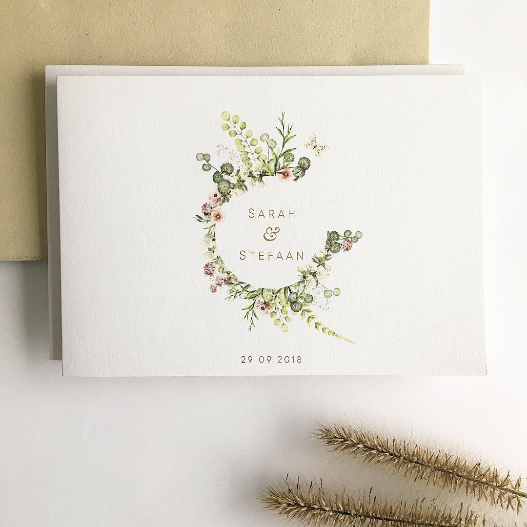 Gouden foliedruk in combinatie met prachtige bloemen.